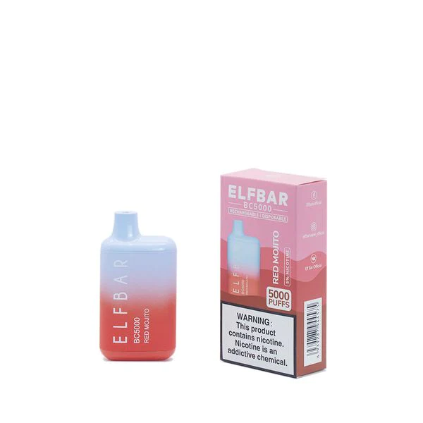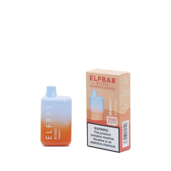 Description of the Elf bar BC5000 disposable e-cigarette, equipped with a 650 mAh rechargeable battery. The Elf bar BC5000 disposable e-cigarette features a flag-shaped design and compact dimensions for an unparalleled experience. In addition, the Elf bar BC5000 disposable e-cigarette is pre-filled with 13 ml of liquid, which allows approximately 5000 puffs. It also features dual coils for a unique flavor. Contrasting color combinations add to your enjoyment. Our goal is to offer you the purest flavor.